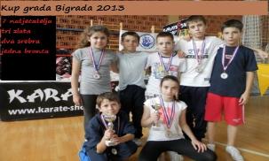 | Dana 08.06.2013.g. održano je medjunarodno klubsko natjecanje KUP GRADA BIOGRADA, na kojem je nastupilo 305 natjecatelja iz 41 kluba Hrvatske i Bosne i Hercegovine.Nastupili smo sa 7 natjecatelja u borbama i uzeli 6 medalja. Zlato su osvojili u kategoriji mlađih učenika Ante Utovac i Antonio Perić, a Ema Vidović u kategoriji učenica, srebro su osvojili Marinela Perić i Ante Krstičević, također u kategoriji učenika, broncu je osvojio Ivan Batinović u kategoriji mlađjih kadeta. Nastupio je još Ante Dugandžić koji se plasirao na 5 mjesto. |