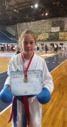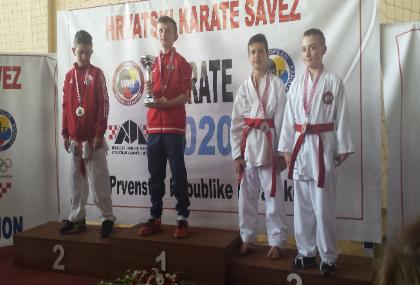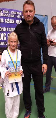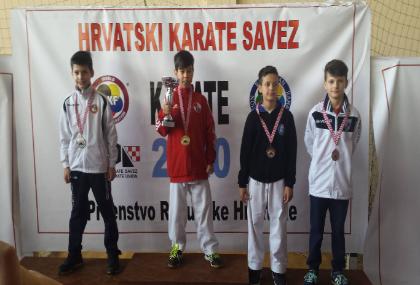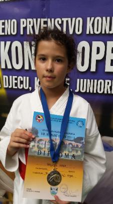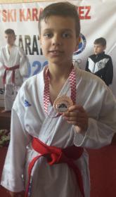 | Hrvatske u karateu, u borbama za mlađe uzraste, na kojem je sudjelovalo 515 natjecatelja. brončane medalje. Duje Mihaljević osvaja broncu u kategoriji mlađi učenici -38 kg. Prvo kolo je bio slobodan, drugo pobjeđuje sa 3:0, treće ostaje neriješeno te gubi na izjašnjavanje sudaca 3:2, ali u repasažu pobjeđuje protivnika sa 4:0 i osvaja broncu. Duje Mihaljević, nakon osvojene medalje u svom uzrastu, dan poslije ponovo osvaja broncu u starijem uzrastu u kategoriji učenici -38 kg. Prvu borbu je dobio 7:2, drugu gubi 9:1 i ulaskom protivnika u finale, radi dvije repasažne borbe za broncu, prvu pobjeđuje 9:0, a drugu odlučujuću s majstorskom izvedbom osvaja broncu sa 6:0 razlike. Lucija Utovac je osvojila brončanu medalju u kategoriji učenice +44. Prvu borbu pobjeđuje 2: 0, drugu rezultatom 1:0, treću borbu gubi 2:1 i zbog ulaska u polufinale u samo jednoj repasažnoj borbi gdje je bio nerješen rezultat, pobjeđuje odlukom sudaca 3:2 te osvaja brončanu medalju. Pored navedenih osvajača medalja sljedeći natjecatelji su se plasirali na 5 mjesta (u karateu nema četvrtog mjesta, već dva treća i dva peta) dogurali su do polufinalnih borbi te izgubili u repasažnim borbama za treća mjesta: Laura Ćulum, prošlogodišnja prvakinja Hrvatske, u kategoriji učenice -40 kg. Prvu borbu pobjeđuje 2:0, drugu pobjeđuje na odluku sudaca 3:2, treću borbu gubi 5:3 ali u repasažnoj borbi za broncu, iako je vodila 2:0 u zadnjih 15 sekundi zbog kazni gubi i plasira se na 5 mjesto. Ante Utovac, u kategoriji mlađi kadeti -57 kg. Prvo kolo pobjeđuje pri rezultatu 3:3, izbacivši protivnika u zadnjih 15 sekundi dva puta iz borilišta, u drugom kolu pobjeđuje 5:2, u trećem gubi sa 5:1, te u repasažnoj borbi za 3 mjesto gubi na kazne pri rezultatu 0:0, te se plasirao na 5 mjesto. Nastupili su još: Ante Kratičević koji u prvom kolu pobjeđuje 3:0, u drugom 6:0 ali u trećem za ulazak u polufinale, gubi na 4 kaznena udarca iako je vodio 2:0. Sara Đukić i Lucija Utovac u uzrastu mlađih kadetkinja gube u prvom kolu. Od postojanja kluba ovo je 13 državna medalja koju su natjecatelji Karate kluba Metković, donijeli u naš grad. |