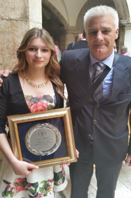 | MAJA ŽDERIĆ NAGRADA ŽUPANIJE Naša natjecateljica Maja Žderić, dva puta viceprvakinja Hrvatske i dva puta brončana na državnim prvenstvima u borbama, sedmerostruka prvakinja Dalmacije u borbama, nositeljica preko 40 zlatnih medalja sa međunarodnih klubskih natjecanja ..... danas,12.svibnja 2014.g, u Dubrovniku u palači Sponza proglašena je NAJUSPJEŠNIJOM ŽENSKOM ŠPORTSKOM NADOM DUBROVAČKO-NERETVANSKE ŽUPANIJE ZA 2013.g. Na fotografiji se nalaze Maja Žderić i Predsjednik Zajednice športa Dubrovačko-Neretvanske županije gosp. Branko Bazdan |