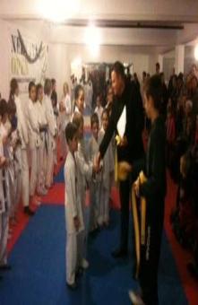 | POLAGANJE POJASEVA prosinac 2013 Dana 20.12.2o13 održano je polaganje za učenička zvanja 8, 7, 6, 5, kyu i svi su članovi koji su dobili odobrenje i pristupili polaganju uspješno su položili programe za veća zvanja. Uprava kluba i ispitivač Denis Žderić im čestitaju i nek im veće karate zvanje bude vjetar u leđa za daljnje napredovanje u savladavanju ove vještine. |