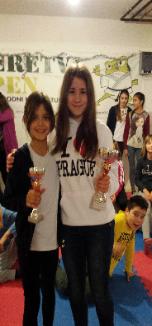 | Maja Žderić i Ivana Galić su tijekom mjeseca lipnja i srpnja polagale i položile majstorsko zvanje 1 DAN, svima nama poznato kao crni pojas. Maja trenira od 2002.g. kada je kao četverogodišnjakinja obukla kimono i samouvjereno gazila tatami te osvojila preko 100 medalja od čega su najvrijednije 4 državne medalje (dvije bronce i dva srebra) u kategorijama učenica i mlađih kadetkinja. Maja je zbog školskih obveza izvan grada privremeno se prestala natjecati ali u klubu povremeno pomaže u radu sa mlađim uzrastima. Ivana Galić je karate počela trenirati 2007.g. te je također na natjecanjima osvojila dvoznamenkasti broj medalja. Od osnutka kluba 2002.g. u klubu je stasalo 8 majstorica karatea i dva majstora. Maji i Ivani čestitamo i nadamo se da neće ostati samo na 1 DAN-u. |