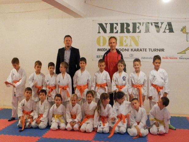 | POLAGANJE UČENIČKIH I MAJSTORSKIH ZVANJA Tijekom prosinca 23 i 28.12.2015 održano je polaganje za učenička karate zvanja, te su tom priliko sljedeći članovi uspješno položili karate zvanje 8 kyu (žuti pojas), nakon tri mjeseca treniranja: Ema Gnječ, Karla Pezić, Petra Veraja, Mišo Draženović, Anja Pokrajac, Lucija Ćelić, Karlo Pehar, Petar Obšivač, Duje Mustapić, Patrik Marušić, Nina Prskalo, Vana Prskalo, Matej MirkoTalajić, Natali Talajić, Gabrijel Primorac, Petra Grgić, Marin Grgić, Nikola Pucar, Ana Krešić. Program polaganja za 7 kyu narančasti pojas, nakon 6 mjeseci treniranja, savladali su Frane Oršulić i Eva Mihaljević, dok su nakon godinu dana treniranja 6 kyu ( crveni pojas) zasluženo svezali Antun Ujdur i Antonio Pavlović. Višegodišnjim treniranjem preko 5 godina, 4 kyu (plavi pojas) položio je Lukas Glaviškić, dok su klubski natjecatelji sa sedmogodišnjim stažom treniranja Ante Utovac i Marija Glavinić savladali program za 2 kyu (smeđi pojas). Sukladno postignutim rezultatom na državnom prvenstvu, Antonela Perić osvojivši brončanu medalju u borbama, u kategoriji juniorki do 48 kg, od strane ispitivača Denisa Žderića ista je promaknuta za jedno zvanje više, pa je time ponosna vlasnica 1 kyu zvanja (smeđe-crnog pojasa). |