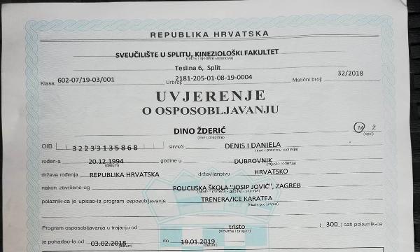 DINO ŽDERIĆ I DARIO BUKVIĆ završili trenersku školu smjer trener karatea na Sveučilištu u Splitu, Kineziološki fakultet |