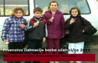 | Prvenstvo Dalmacije za mladje kadete/kinje, odrzano je u Splitu, dana 10.02.2013g. Nastupili smo sa 5 natjecatelja i osvojili jednu broncu. Ivan Batinovic je u kategoriji -36 kg osvoji broncanu medalju. Naš natjecatelj Šimun Celic je u kategoriji - 57 kg došao do finala gdje je u finalnoj borbi vodio ali je zbog nesportskog ponašanja ( bacanja rukavica) diskvalificiran poradi cega je ostao bez medalje. |