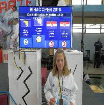 | BIHAĆ OPEN 2016, srebro i dvije bronce Naših pet natjecatelja u konkurenciji 74 kluba, 685 natjecatelja iz 8 zemalja osvojili su tri medalje: LAURA ĆULUM, srebro, prva borba 3:0, druga 5:0 na odluku sudaca, dok je u finalnoj borbi iako je vodila do kraja borbe 3:0 izgubila zbog napravljenih kazni LUCIJA UTOVAC, bronca, prvu borbu nerješenim rezultatom 4:4 izgubila na odluku sudaca a u repasažnoj borbi pobjedila 4:1 EMA VIDOVIĆ, broncu, prvu borbu pobjedila 6:2, drugu izgubila 2:0 i repsažnu pobjedila 5:0 na odluku sudaca. Nastupili su još Iva Vučić i Petar Borovac ali bez uspjeha, iako su se plasirali u repasažne borbe sa tri pobjede. |